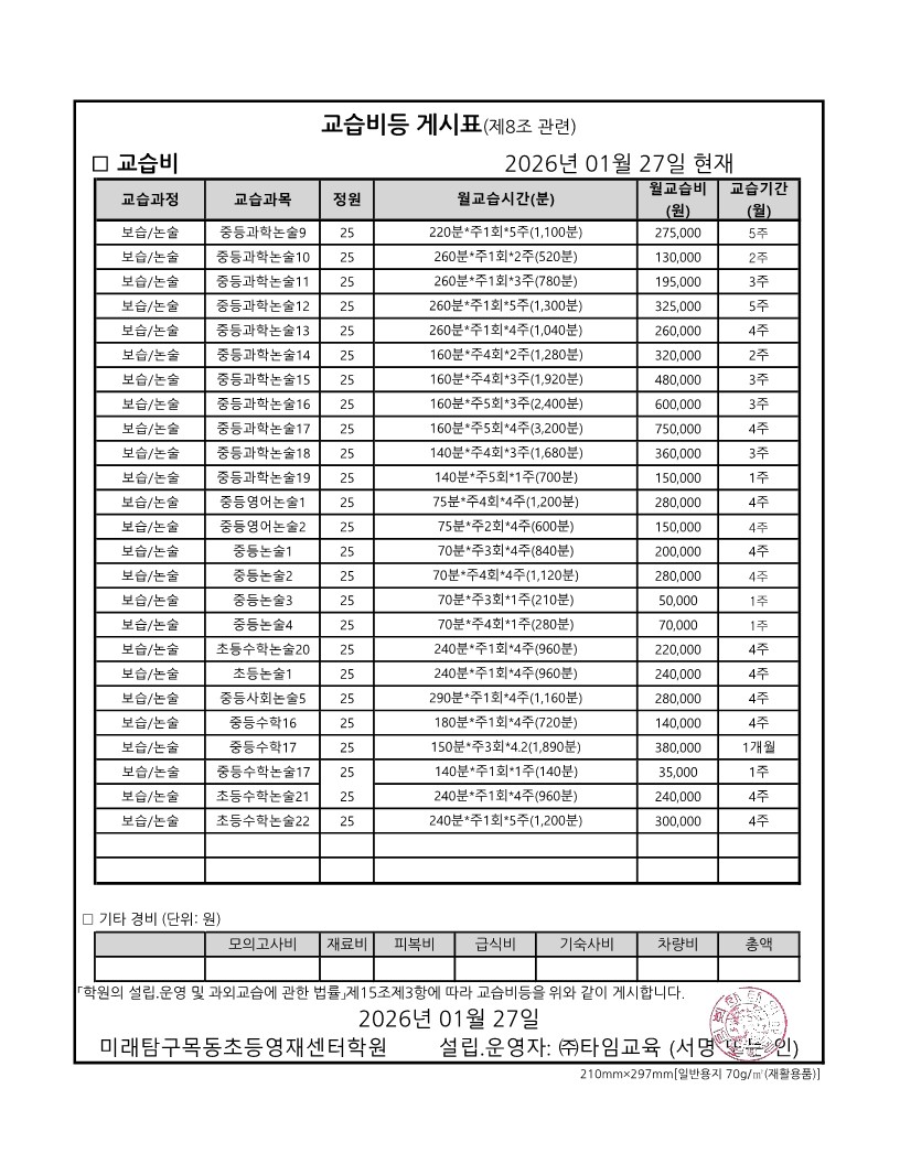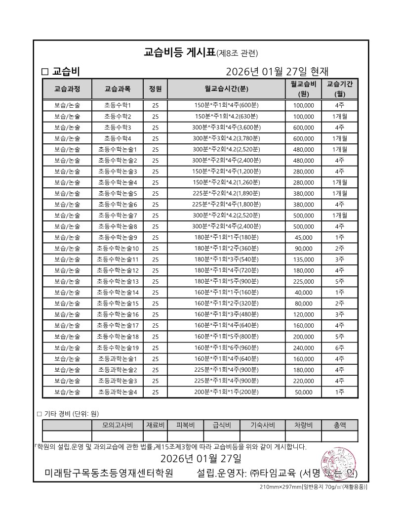 수강료안내